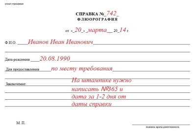 Если патологических изменений органов грудной клетки не выявлено, в выдаваемом бланке ставится стандартная печать, свидетельствующая об отсутствие патологии. Оформленный таким образом документ полностью соответствует всем критериям и готов для предъявления по месту требования.